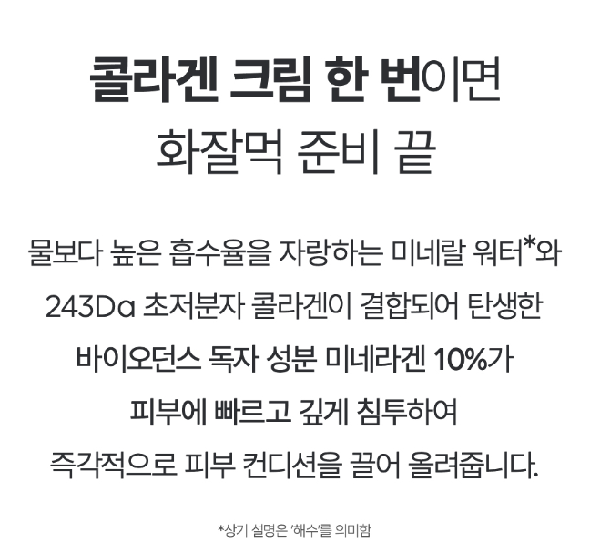 콜라겐크림 : 끈적임 없이 부드러운 제형이라 산뜻하게 흡수돼서 화장해도 베이스 밀림이 없다!